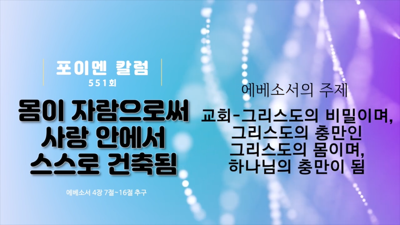 포이멘 칼럼 551회 - 몸이 자람으로써 사랑안에서 스스로 건축됨지방교회 칼럼 2026. 3. 21. 10:15
